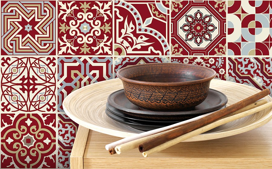 מדבקות לאריחים 15*15 ס''מ אדום עמוק דגם 1276