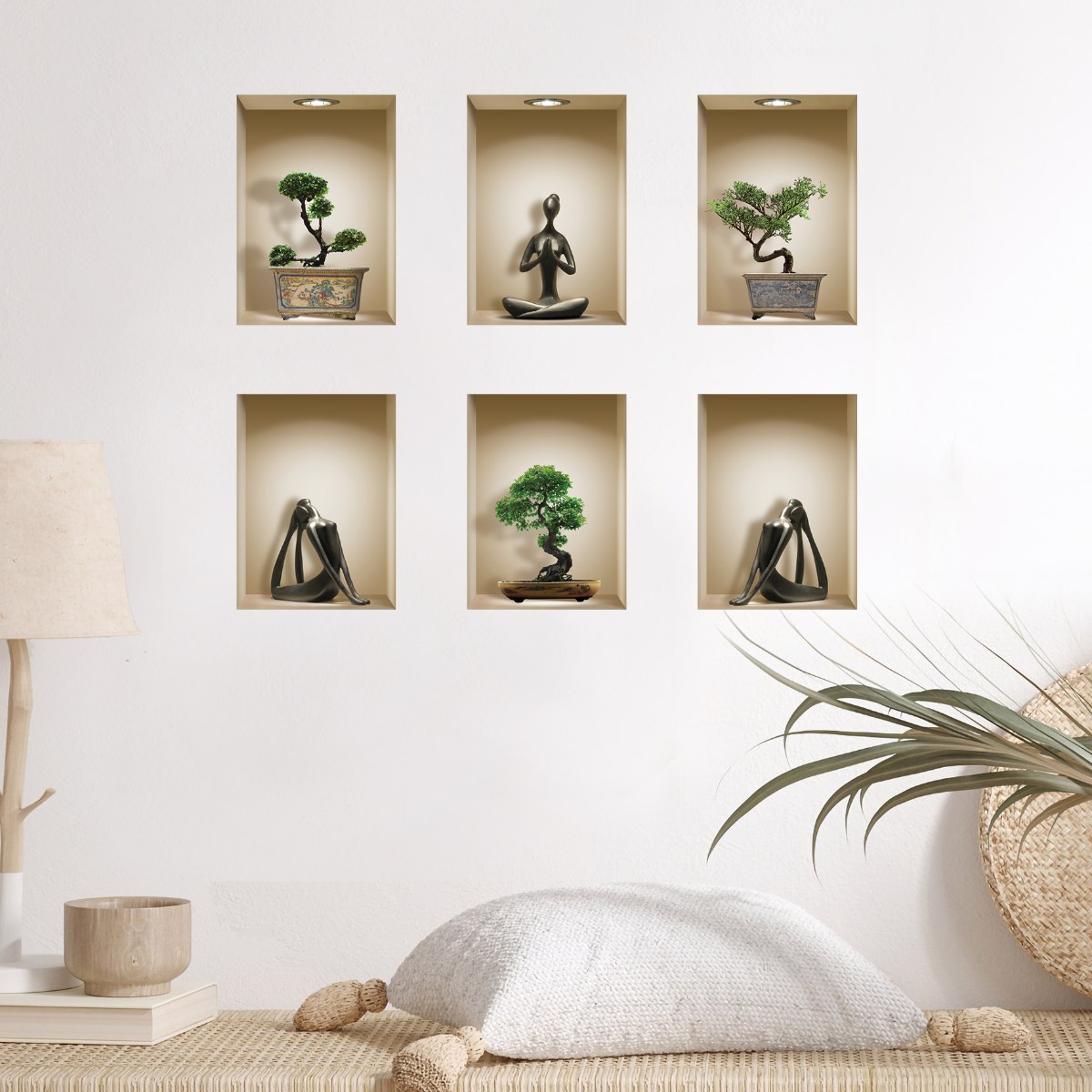 שישיית מדבקות נישה כוורת פסלים שחורים ועציצי בונסאי דגם 600